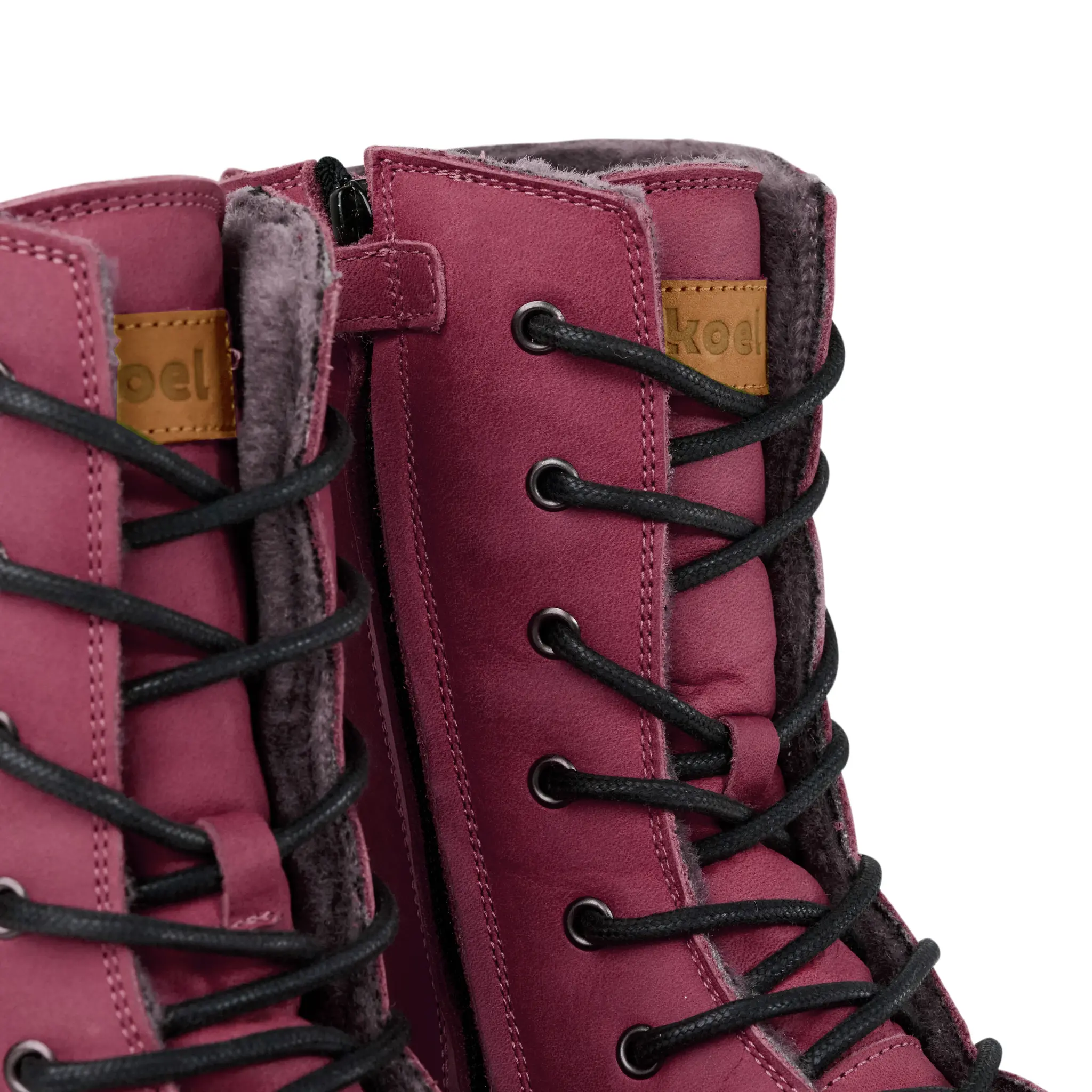 Heerlijke hoge veterboots met een bovenwerk van zacht, soepel leer en warme lamsvacht voering. Aan de binnenzijde van de boots zit een ritssluiting voor extra gemak tijdens het aan- en uittrekken.