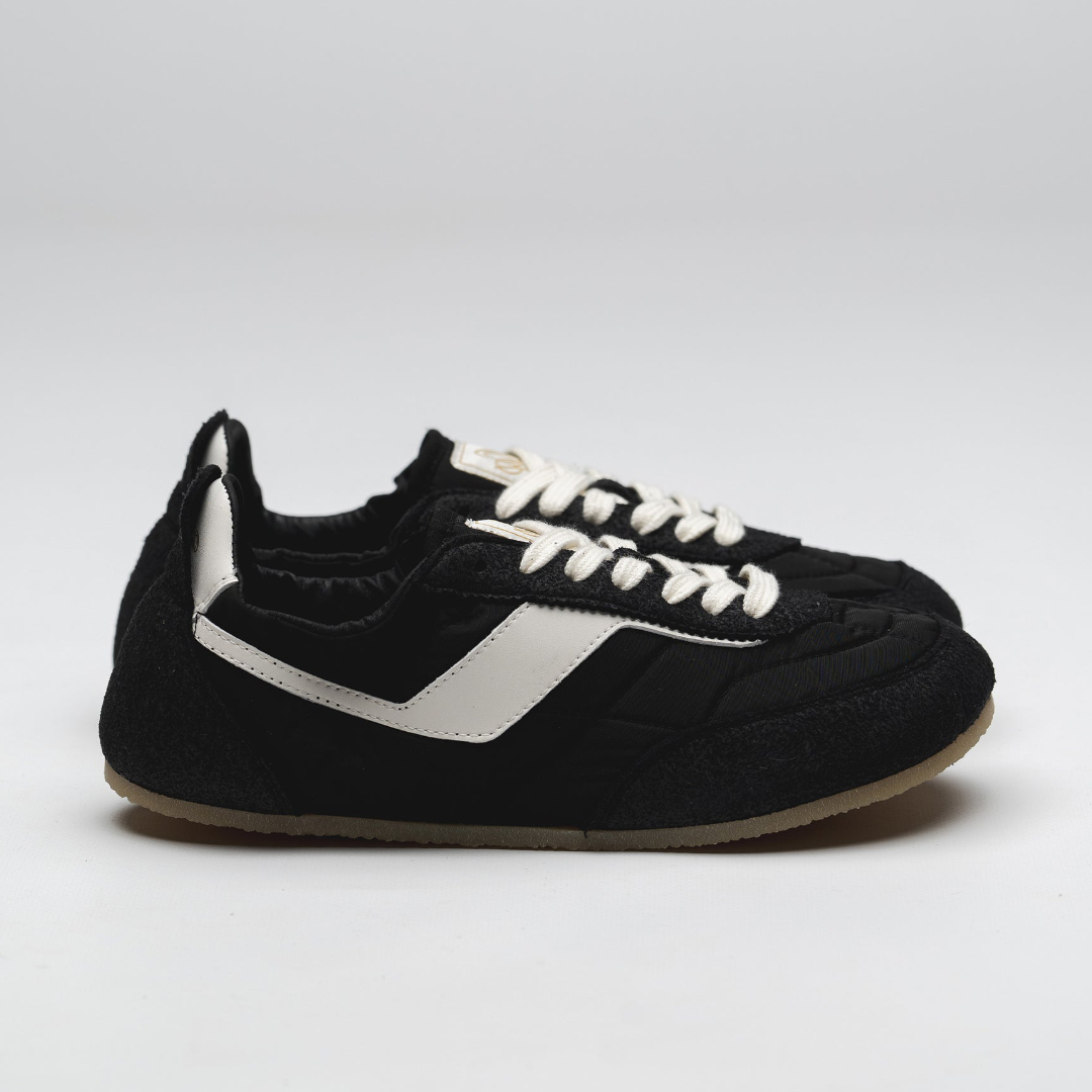 De Kima laat een sneaker en een ballerina samenvallen in één vloeiende beweging. Het gestroomlijnde ontwerp oogt sportief, maar voelt volledig vrij dankzij de ruime teenbox, zero drop en een flinterdunne, buigzame barefootzool die zich bijna oplost onder je voeten.